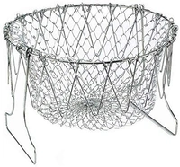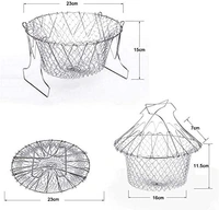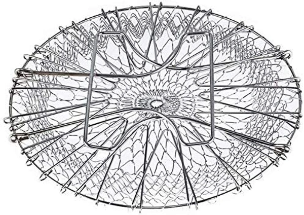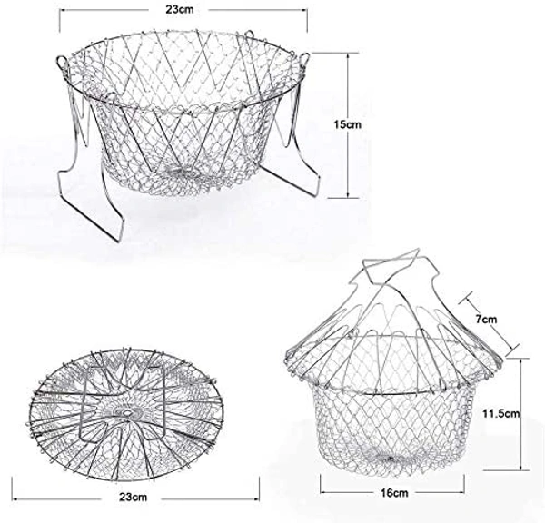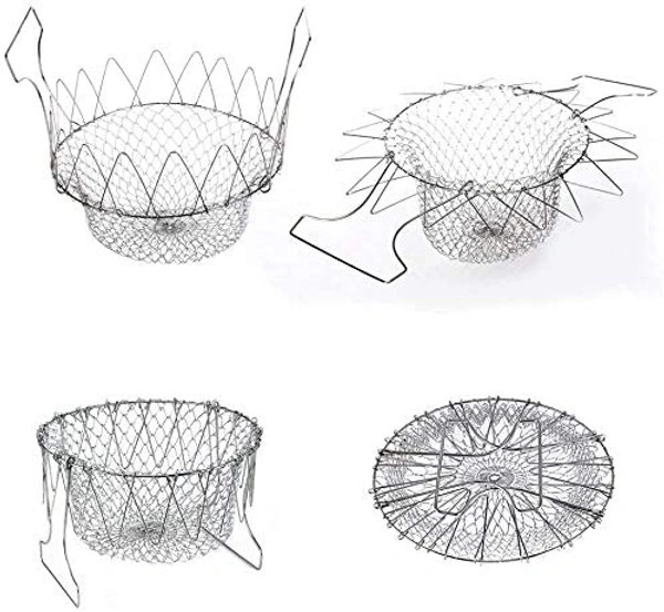 Stainless Steel Multi-Functional Foldable Cooking Chef Basket, Mesh Steam Rinse Strain Fry Basket Strainer Net Kitchen Cooking Tool for Frying, Steaming, Straining, Rinsing (Silver)-A