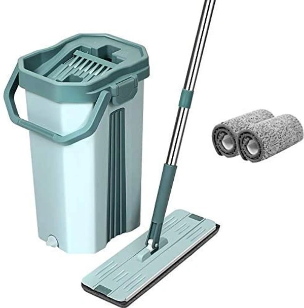 Easy Flat Mop Stick Rod with Bucket Set in Offer for Wet & Dry Use, Best 360 Degree Spin Magic Floor Cleaning for Home + Office and 2 Refill Washable Head