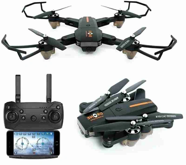 Features & details Camera - Yes, Flying Height - Upto 50 mtrs, Flying Time - 8-10 min, Weight - 0.410 Kgs Best Features: Foldable Drone, Wifi Camera, 480p Camera, 360° Flip, Headless Mode, Altitude Hold, One Key Take Off/ Landing NOTE: Charge atleast 40 min Before Use Drone Battery - 3.7V 1000mAh Li Po Battery (Included) , Remote - 4 AA Battery (Not Included) Pack Contains: 1 Quadcopter(Drone), 1 Transmitter (Remote Control), 4 Ex propeller, 4 Propeller grade, 1 charging cable